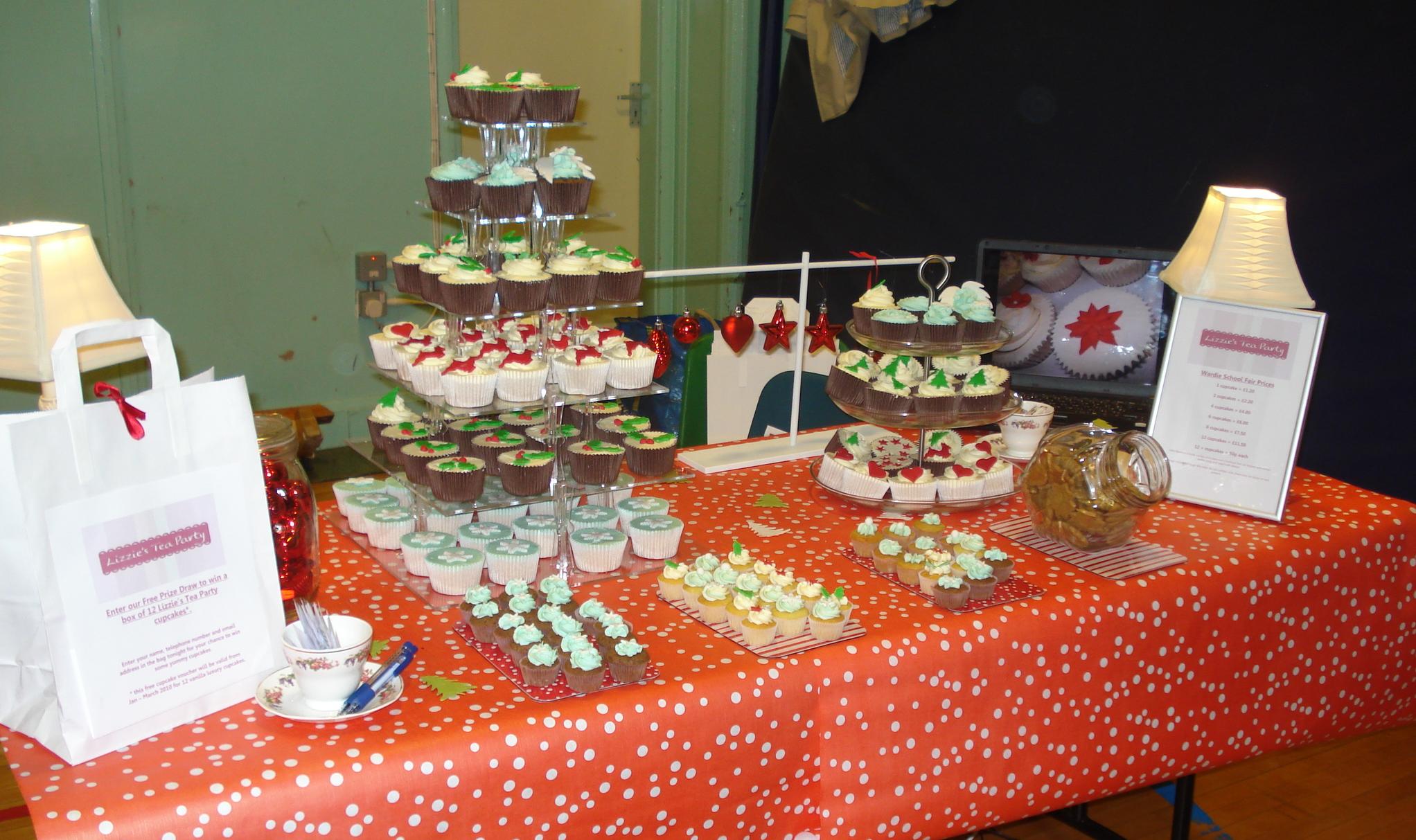 Lizzie’s Tea Party took a stall last week at a local Christmas Fair, selling delicious Christmas themed cupcakes. I had a great night, met some lovely people and sold almost all my cakes…fabulous!