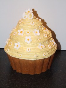 Another giant cupcake leaves the Lizzie’s Tea Party bakery, this one set for The Lakes for a 60th birthday party. The sponge was flavoured with fresh lemon zest and then filled with lemon curd and butter icing!