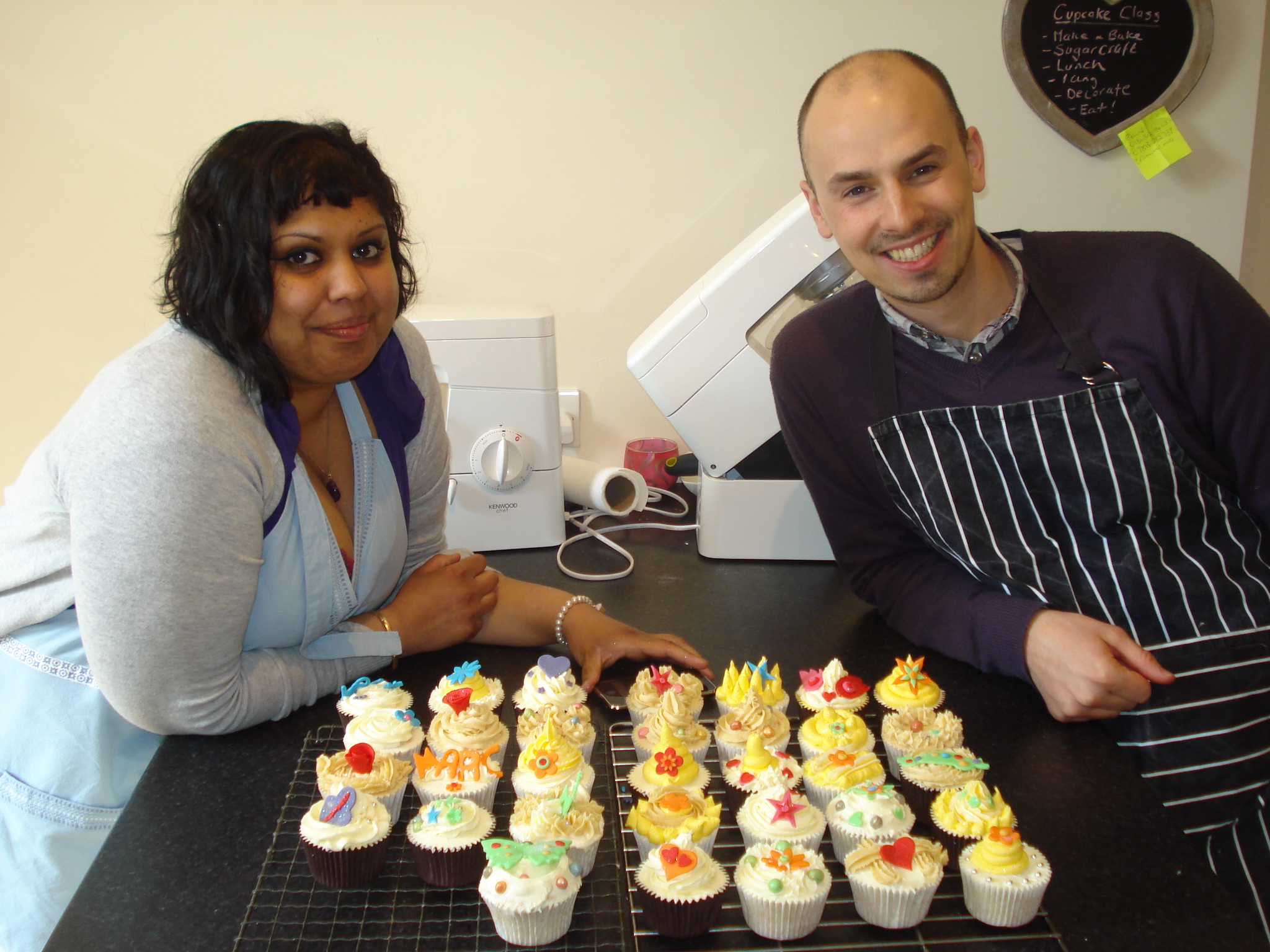 Didn’t we have a lovely time…at Wednesday’s cupcake class. It was a pleasure to meet and talk lots to the lovely Vidya and Graham at this weeks class, and what a creative pair, they created some smashing cupcakes to take away. We made vanilla, lemon and peanut butter flavoured cakes and lots of colourful decorations. Vidya’s sugarcraft Faberge eggs, where particularly fab!