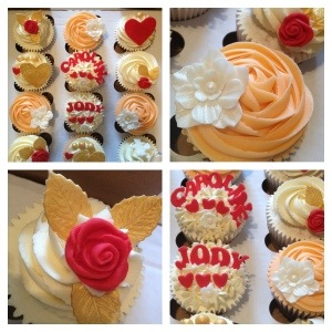 Cupcakes delivered today to celebrate a recent engagement! Customer was looking for pretty cupcakes in reds, ivory and gold. Sponges were chocolate and vanilla flavours. If you would like to order some cupcakes for a celebrations, you can contact me by email to lizziebarr@hotmail.co.uk or call/text me on 07977146035