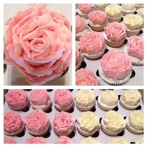 These beautiful pink & white rose cupcakes were delivered on Saturday along with some pretty vintage crockery. Guests, at a special renewal of wedding vows, celebrated with tea and cake x