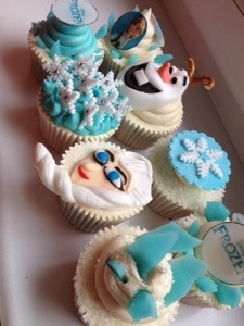 Yummy Frozen cupcakes, with surprise blue sponge inside. To order your own Frozen cupcakes contact Lizzie.