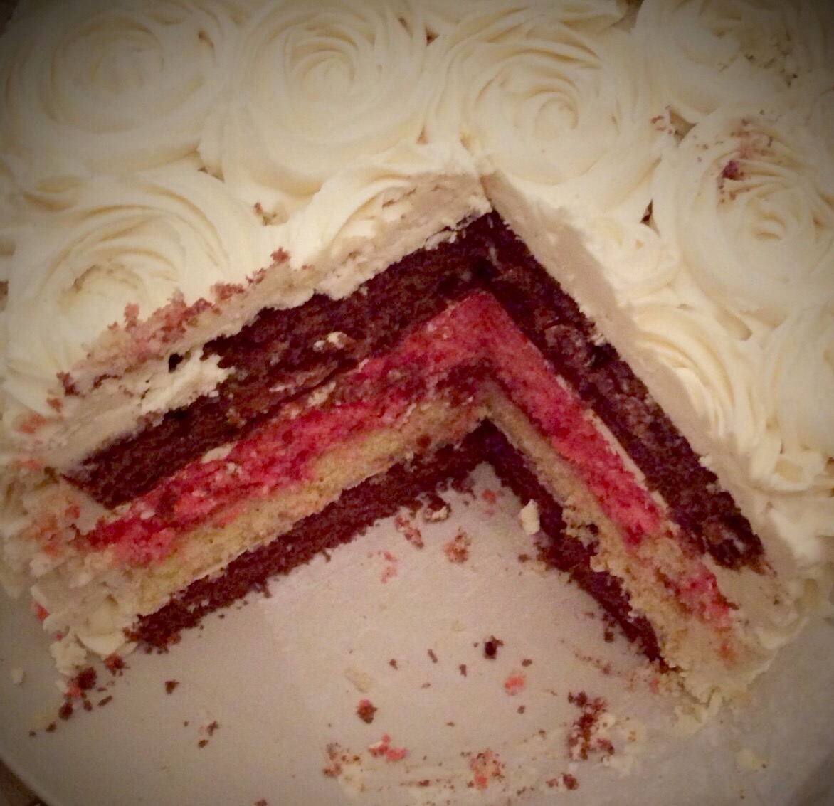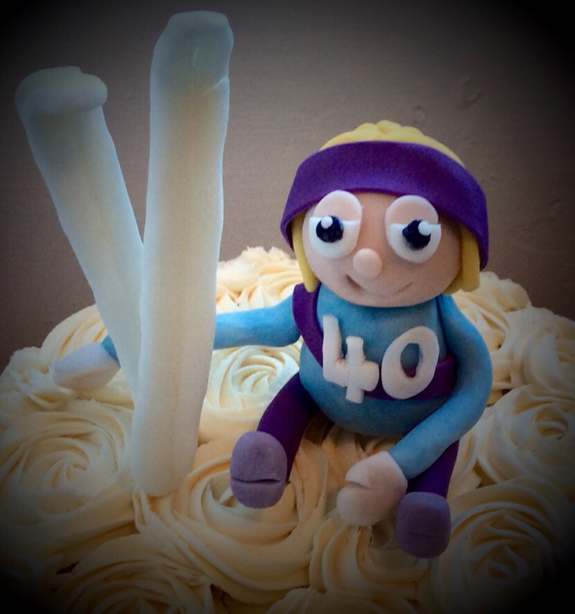 Created a little cartoon skiing model of my friend Karen for her 40th birthday cake. The cake was Neapolitan style with layers of chocolate, vanilla and rose flavours, and for a change I actually got to eat a couple of pieces, yum yum x