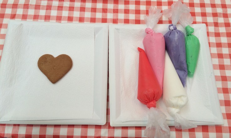 It’s Valentines Day and I am all set up and ready for gingerbread action, outside Sainsbury’s at Cameron Toll shopping centre. Come along with the kids and decorate all these bare gingerbread hearts.