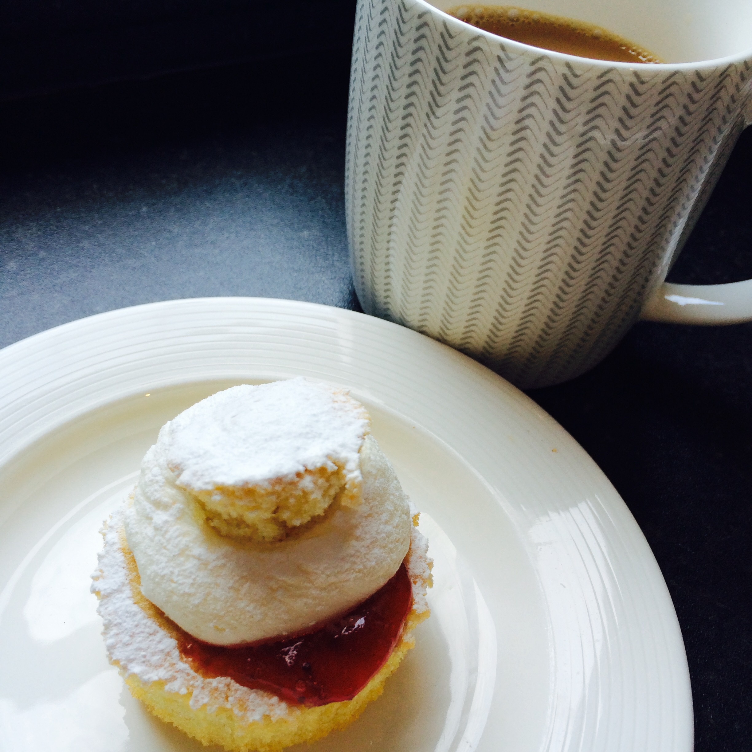 Elevenses…a Victoria sponge cupcake with a cup of tea x