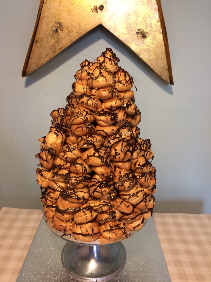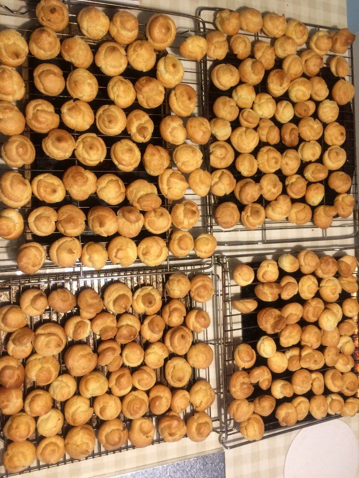 First ever…..190 profiteroles, filled with fresh whipped cream, coated in caramel, drizzled in chocolate ganache with some spun sugar too…..The profiteroles that didn’t make the grade were my breakfast mmmmm. #croquembouche #edinburgh #birthdaycake #nofilterrequired